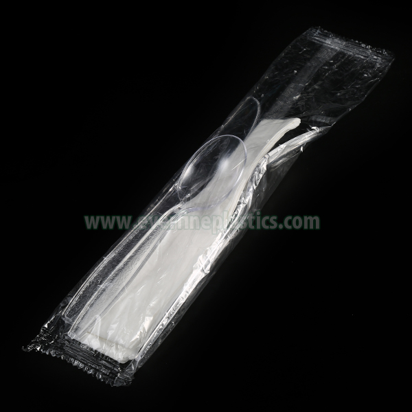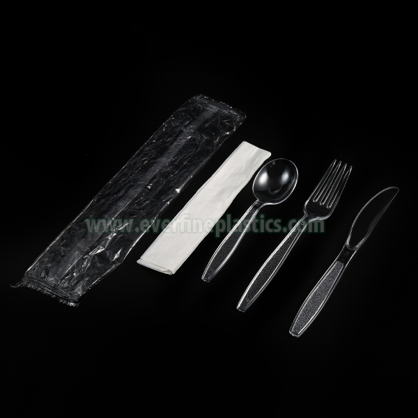 4 in 1 Wrapped Heavy Weight Plastic Cutlery Kit – Fork, Knife, Soup Spoon, Napkin